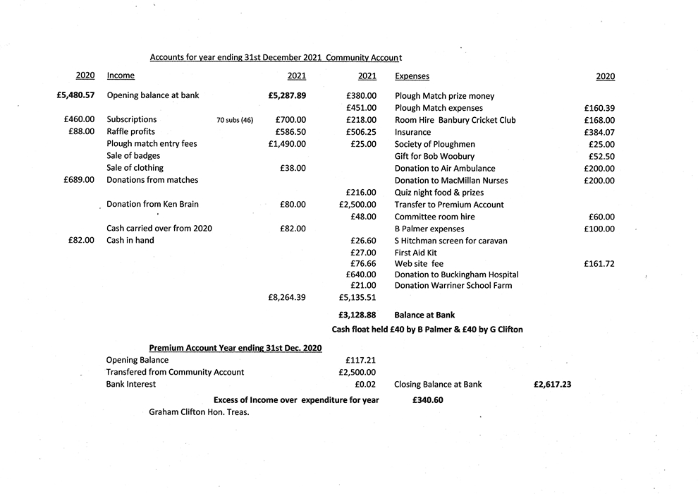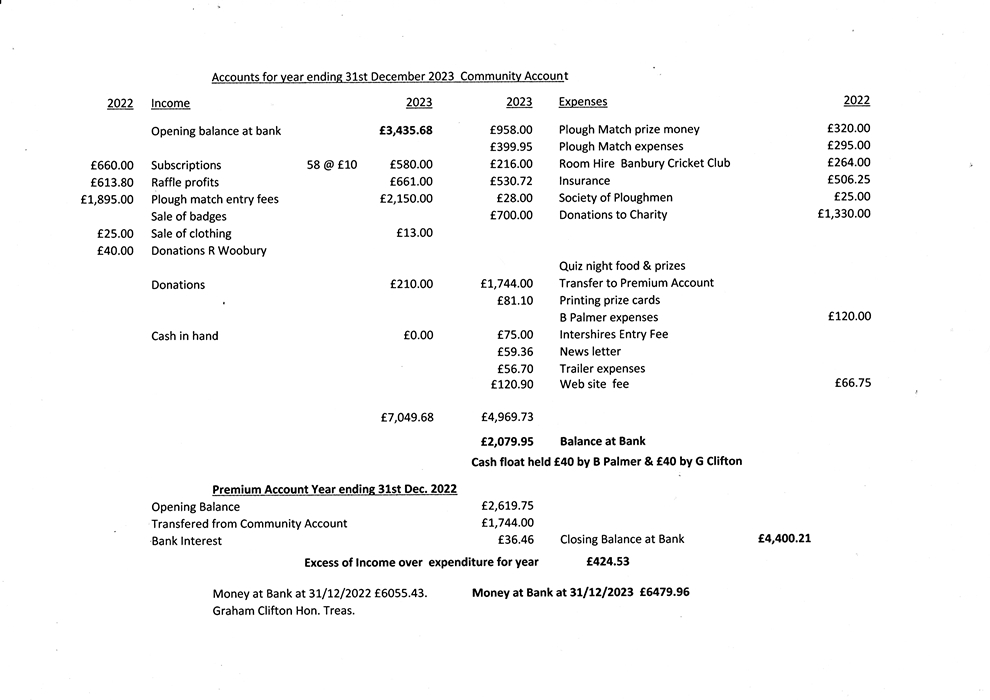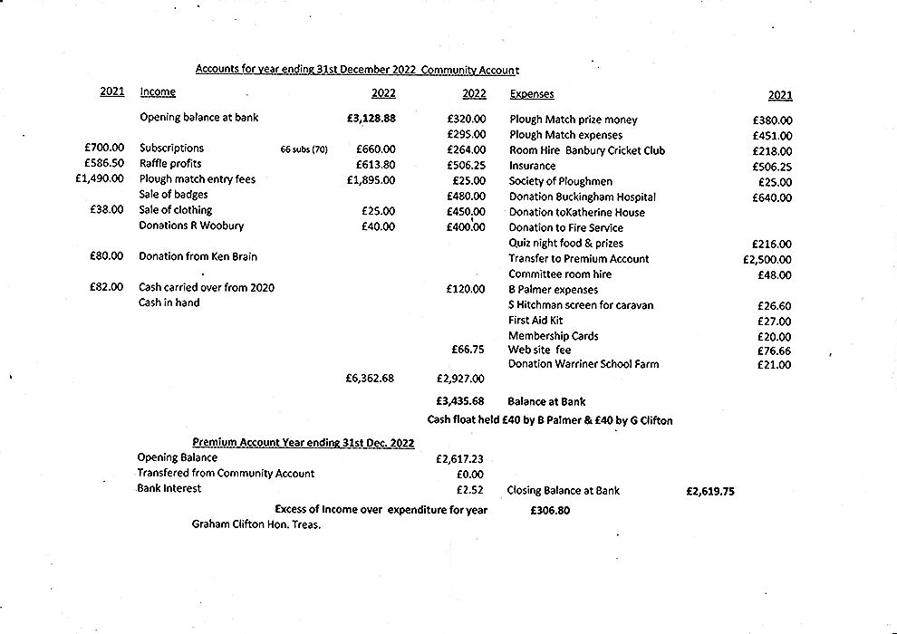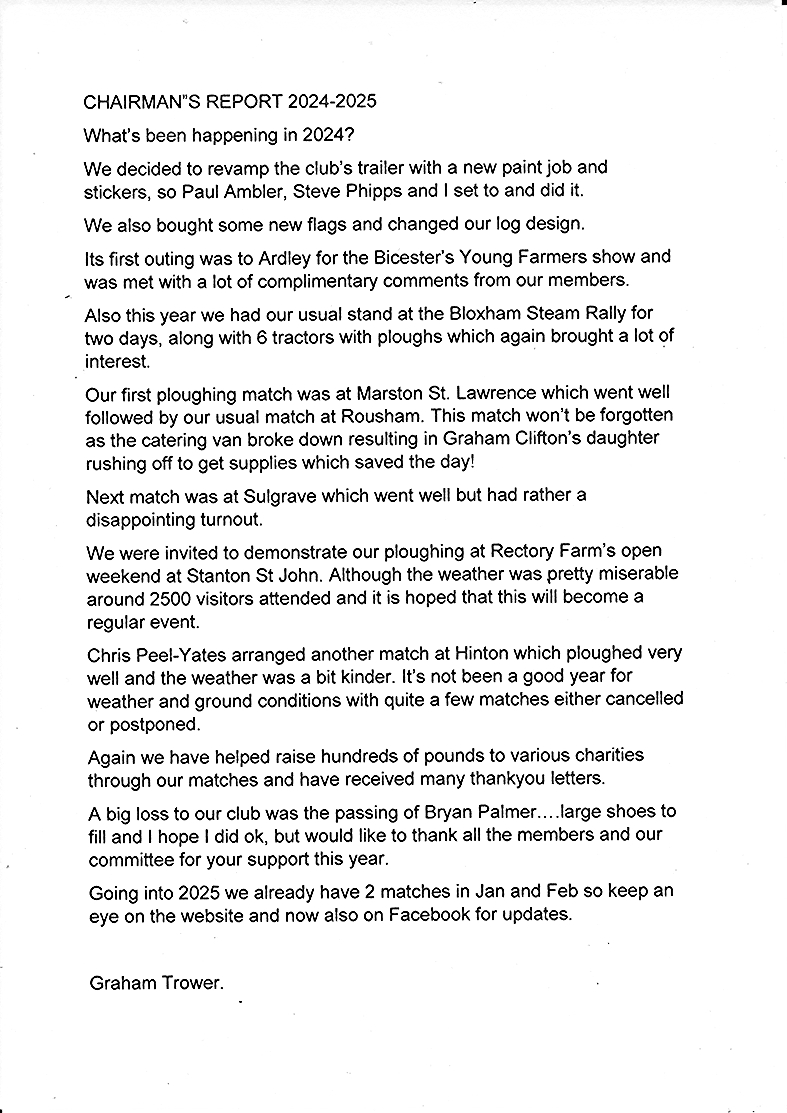 land to be used and our committee members for helpng setting up the sites, Danny for the catering, Jacky for her office work, Claire Allen for some