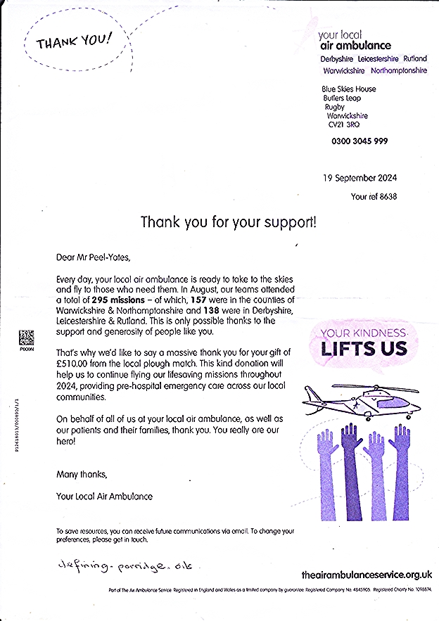 Thank you letter to BDVPS following match at Hinton in the Hedges :- |