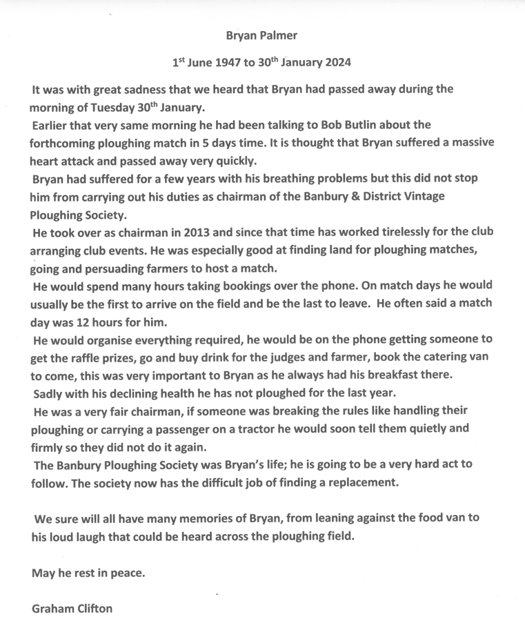 We were saddened to hear of the recent passing of Brian Humphrey on the 19th September aged 83. Brian had been an active and popular member of our club for many years and will be greatly missed.. His funeral service has been arranged to take place at the Banbury Crematorium on Tuesday 14th October at 11.00 am.